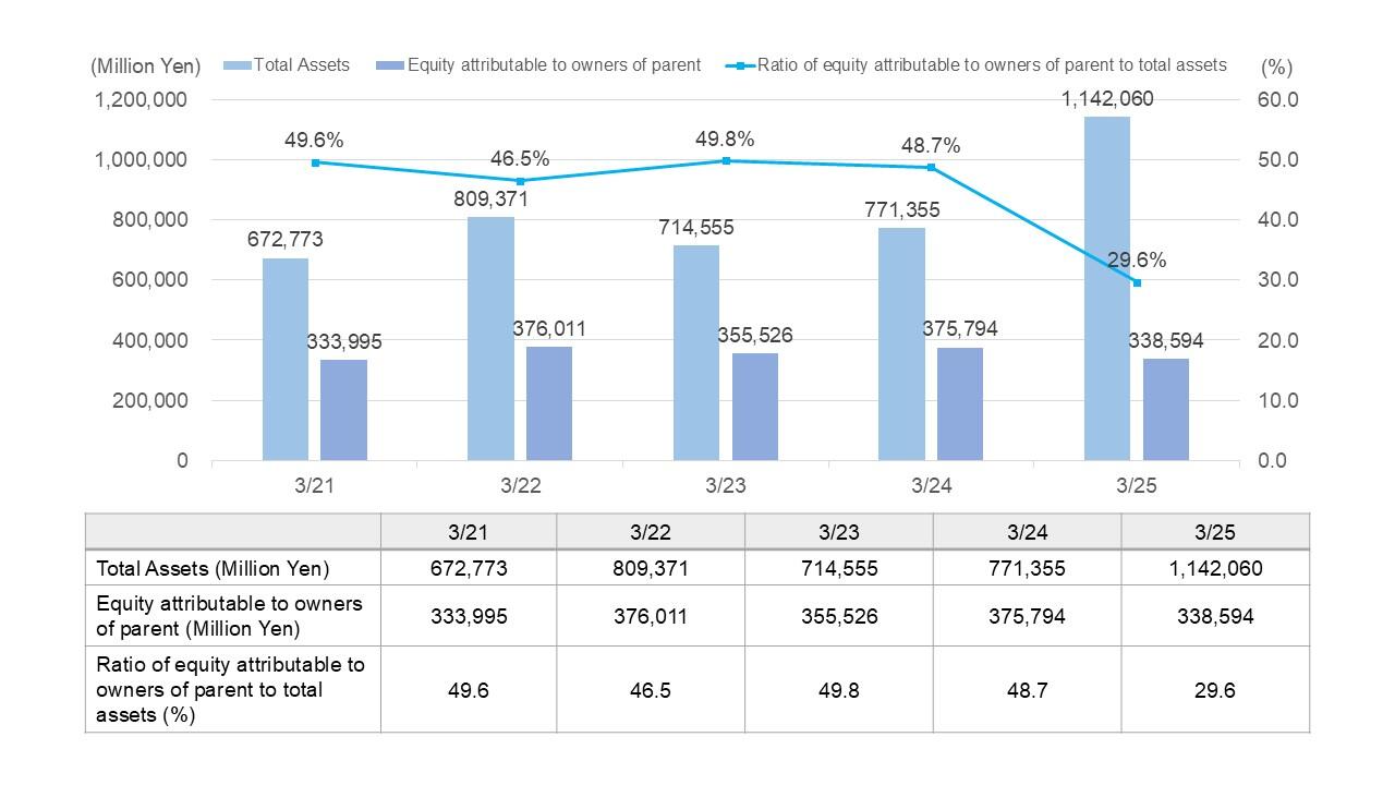 Total assets・Ratio of equity attributable to owners of parent to total assets