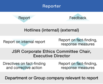 JSR Group has introduced the Corporate Ethics Hotline and Business Partner Hotline as internal reporting channels in order to detect and correct violations of laws and corporate ethics or suspected violations at an early stage within the Group and to ensure sound management of the Group.