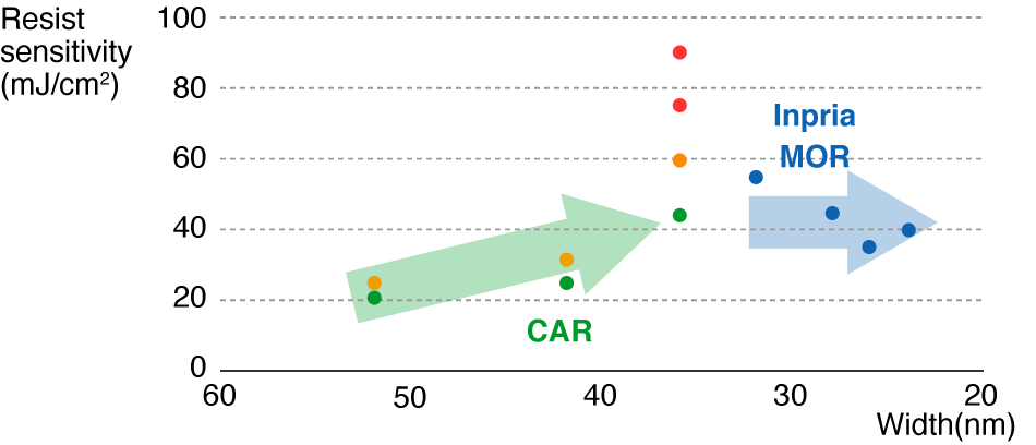 JSR acquired Inpria from which it obtained metal oxide resist (MOR) technology. This technology is one type of EUV resist that enables high resolutions. MOR has a high EUV absorption rate and excellent resolution, making it a key next-generation material that will support future miniaturization. While conventional photoresists have completely excluded metals, MOR is an innovative product that has succeeded in the high technical challenge of active metal utilization. From around 2025, MOR is expected to be applied to the mass production of actual semiconductors. This will greatly contribute to the mass production of high-performance and high-efficiency semiconductors. JSR is combining Inpria's advanced technologies with its own mass production and quality control expertise to provide competitive solutions in advanced semiconductor manufacturing processes, contributing to the evolution and technological innovation of the industry.