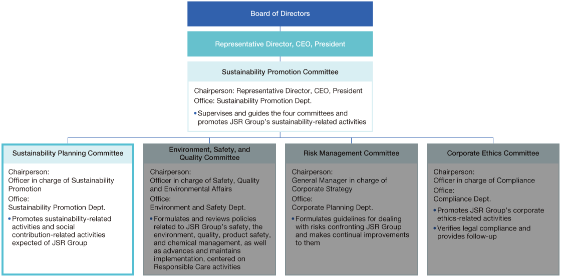 The Sustainability Committee plays a central role in studying and advancing biodiversity conservation activities as part of the sustainability activities to be undertaken by JSR Corporation.