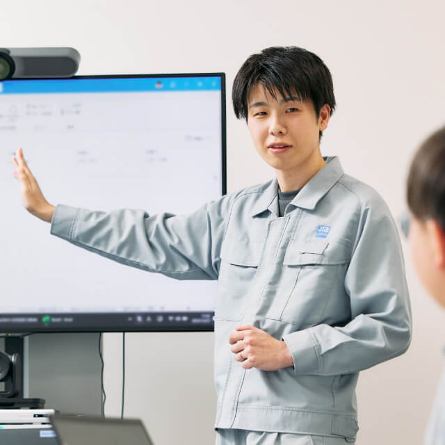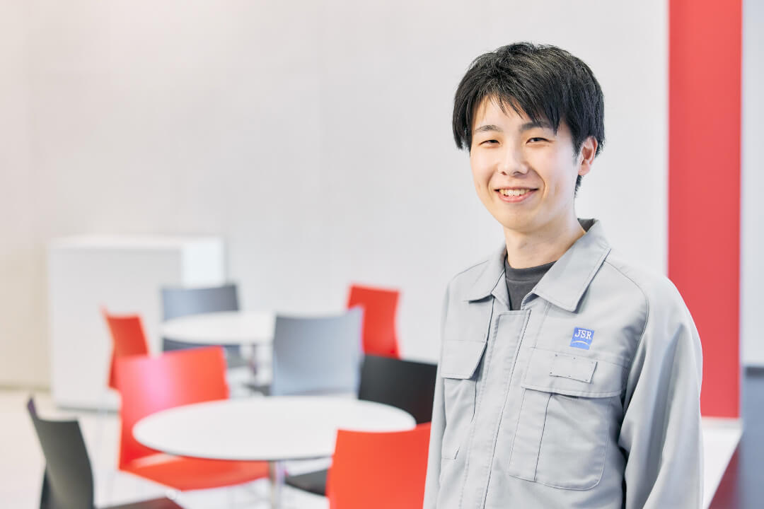 「業務において重要なのは、対応のスピードと判断を間違わないことの両立です。JSRでは若手でもキャリア採用でも与えられる裁量は大きく、自由度は高いと感じています。製造技術は改善の成果が見えやすいだけでなく、その成否は顧客満足度を左右し、事業インパクトも大きい。それが仕事へのモチベーションにもつながっています」