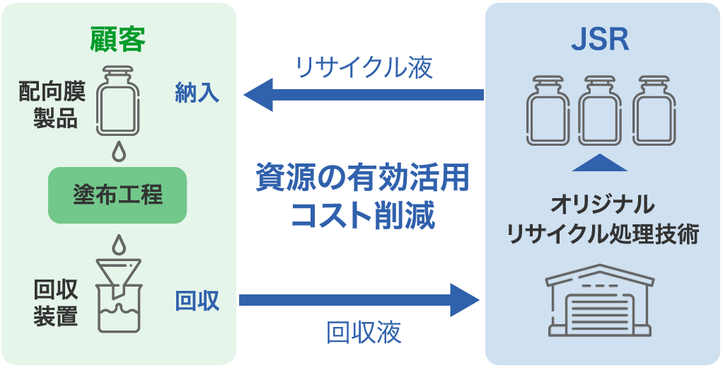 VIVILLOY®は、塗装工程の省略によるコストダウンだけでなく、省エネルギー化や作業効率の改善にも貢献します。また、JSRグループではOA機器用途でお客様と協力してプラスチック部材のクローズドリサイクルを実施しており、この知見を活かして、自動車の無塗装部材のリサイクルも検討していきます。